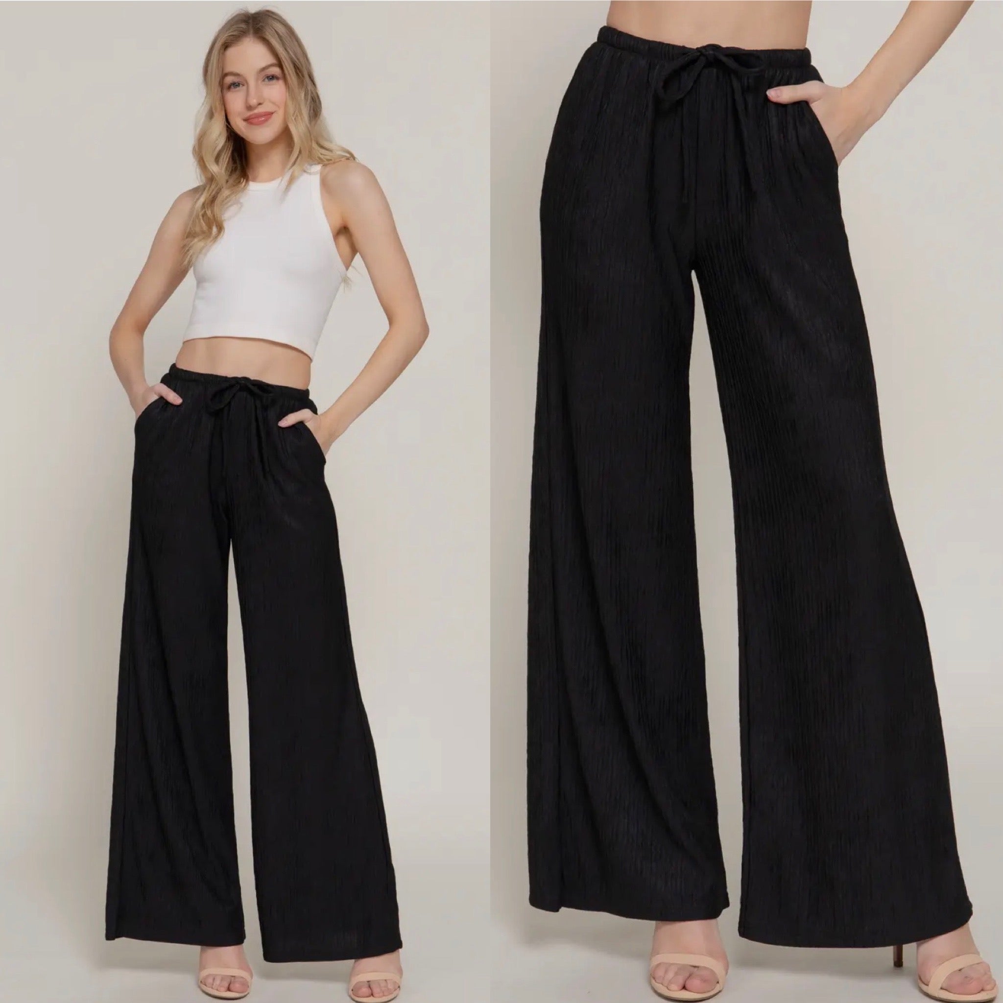 Sarah Textured Straight Leg Pants - Black